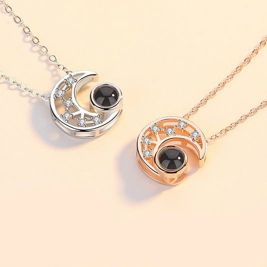 Star and Moon Projection Necklace 100 Languages I Love You Internet Celebrity Pendant